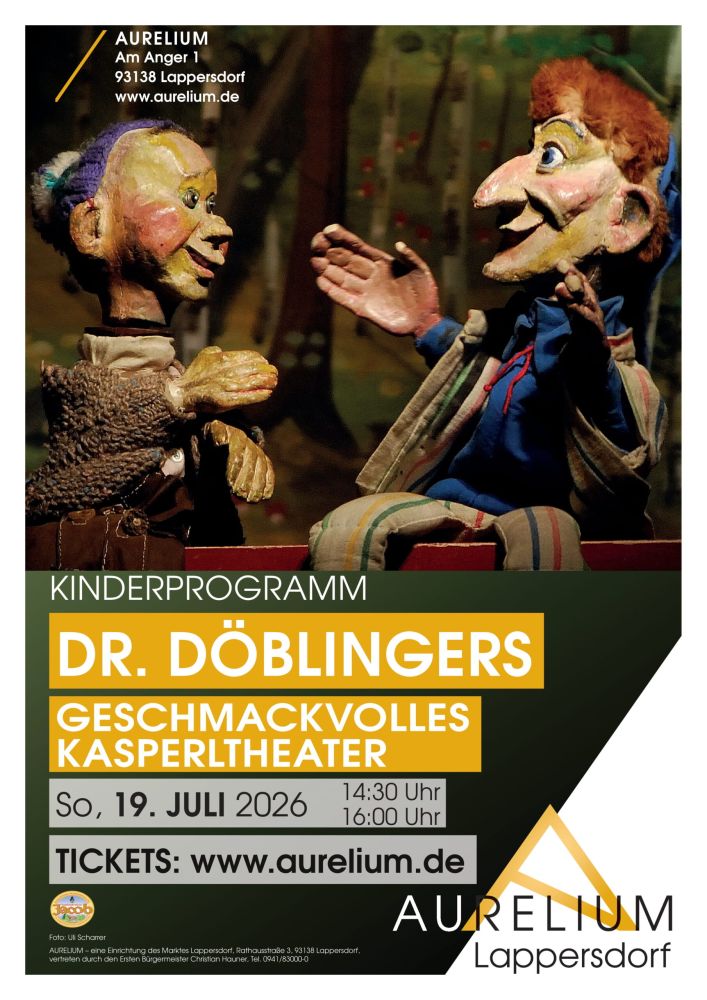 „Doctor Döblingers geschmackvolles Kasperltheater“ wurde 2012 mit dem Schwabinger Kunstpreis und 2018 mit dem Dialektpreis Bayern ausgezeichnet. Die Puppenspieler Josef Parzefall und Richard Oehmann genießen mit ihren markanten Bühnenkollegen längst Kultstatus. Ein großer Spaß für Jung und Alt! (für Kinder ab 3 Jahren / Dauer ca. 45 Minuten; freie Platzwahl)