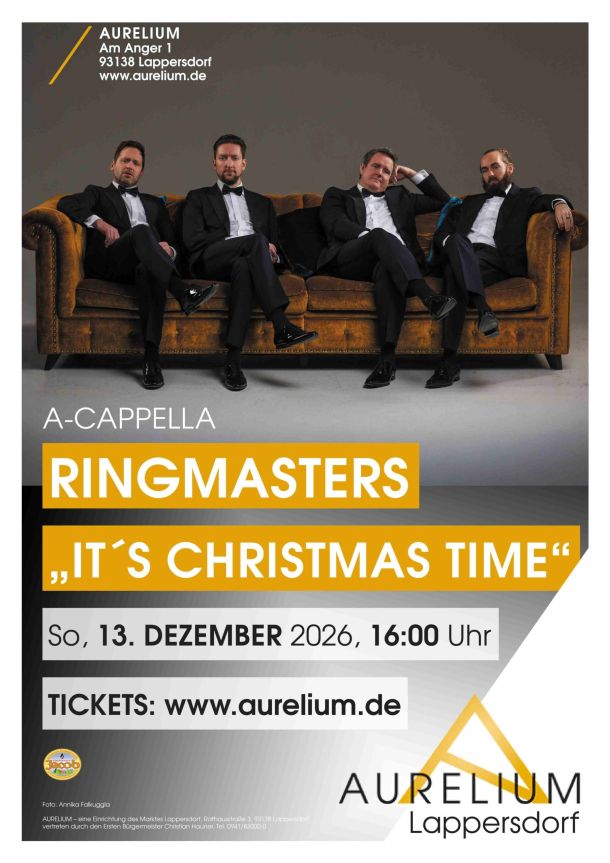 Die schwedischen RINGMASTERS vereinen unglaubliche vokale Virtuosität mit der ansteckenden Energie der Popmusik und des Entertainments. Das „Christmas“-Programm der vier Ausnahmesänger ist eine bunte Mischung aus beliebten englisch-amerikanischen Klassikern und traditioneller schwedischer Weihnachtsmusik. Ein echter adventlicher Hochgenuss!